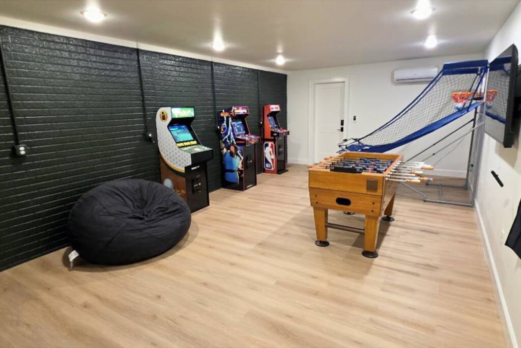 Welcome to The Fjord — a luxury retreat on Beaver Lake designed for families, friends, and groups who want more than just a place to stay. This 5,000 sq. ft. lakefront home sits on a private 4-acre parcel, blending modern finishes with resort-style amenities. Just 7 minutes from downtown Rogers — where you’ll find fine dining, nightlife, and boutique shopping — yet tucked away enough to feel secluded, The Fjord offers the best of both worlds. Inside, the upstairs living area features soaring ceilings, two plush sofas, two accent chairs, and panoramic views of the surrounding trees. The chef’s kitchen is fully outfitted with Thermador appliances, a farmhouse sink, and expansive counters — perfect for preparing meals together or bringing in a private chef. A Sonos sound system fills the main living room and back patio with music at the touch of a button. The sleeping arrangements are designed with flexibility in mind: 4 King Bedrooms (two with ensuite baths, two sharing a spacious bath) The “Little Kids” Room with 2 twin beds The Bunk Room with 4 Twin XLs and 2 Queens in a custom bunk configuration — plus two full bathrooms for convenience In total, The Fjord offers comfortably arranged accommodations for large groups with both privacy and togetherness in mind. Entertainment is at the heart of this property. The downstairs den features a lounge-style sectional, pub table, and bar seating, alongside an arcade with foosball, pop-a-shot basketball, and classic arcade games. Step outside to the expansive patios and enjoy the six-person Jacuzzi hot tub, a Blaze grill and griddle, and a Big Green Egg for those who prefer charcoal cooking. After dinner, gather around the firepit or challenge friends to a game of baggo under 100 feet of string lights designed for ambience without attracting bugs. The sports barn is where The Fjord sets itself apart — a full-size indoor pickleball court, finished with professional surfacing and ready for year-round play. Unlike many homes on Beaver Lake, The Fjord has access to Walmart delivery, Uber Eats, and Uber, making it as convenient as it is luxurious. *Why Guests Love The Fjord* -Resort-style amenities in a private home -Designed with large groups in mind (ample beds, multiple baths, spacious common areas) -Easy access to downtown Rogers nightlife and dining -Rare indoor pickleball barn for year-round play This property was built to bring people together — whether for a relaxing weekend away, a family reunion, or simply time spent with the people who matter most. Multiple outdoor cooking and gathering spaces