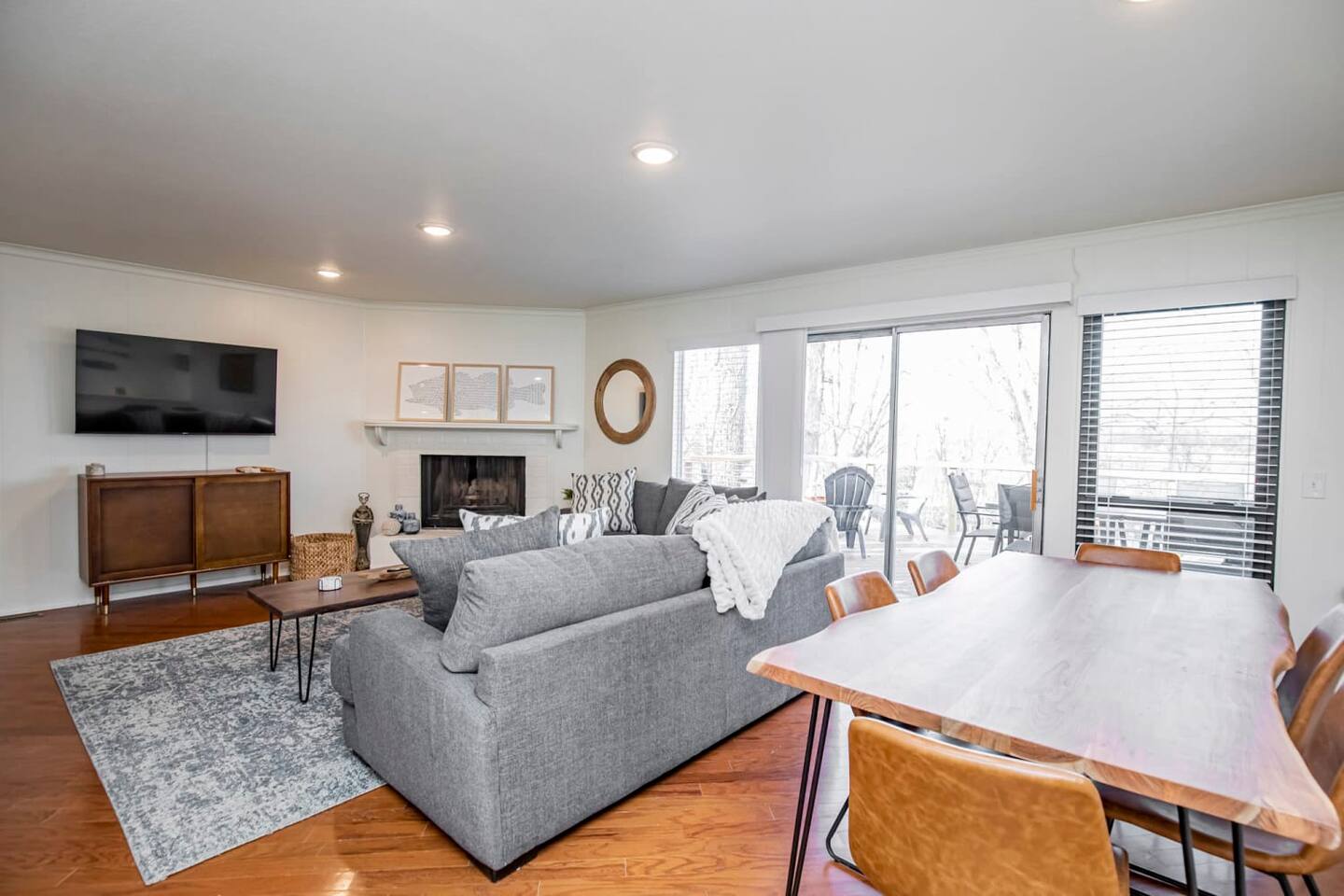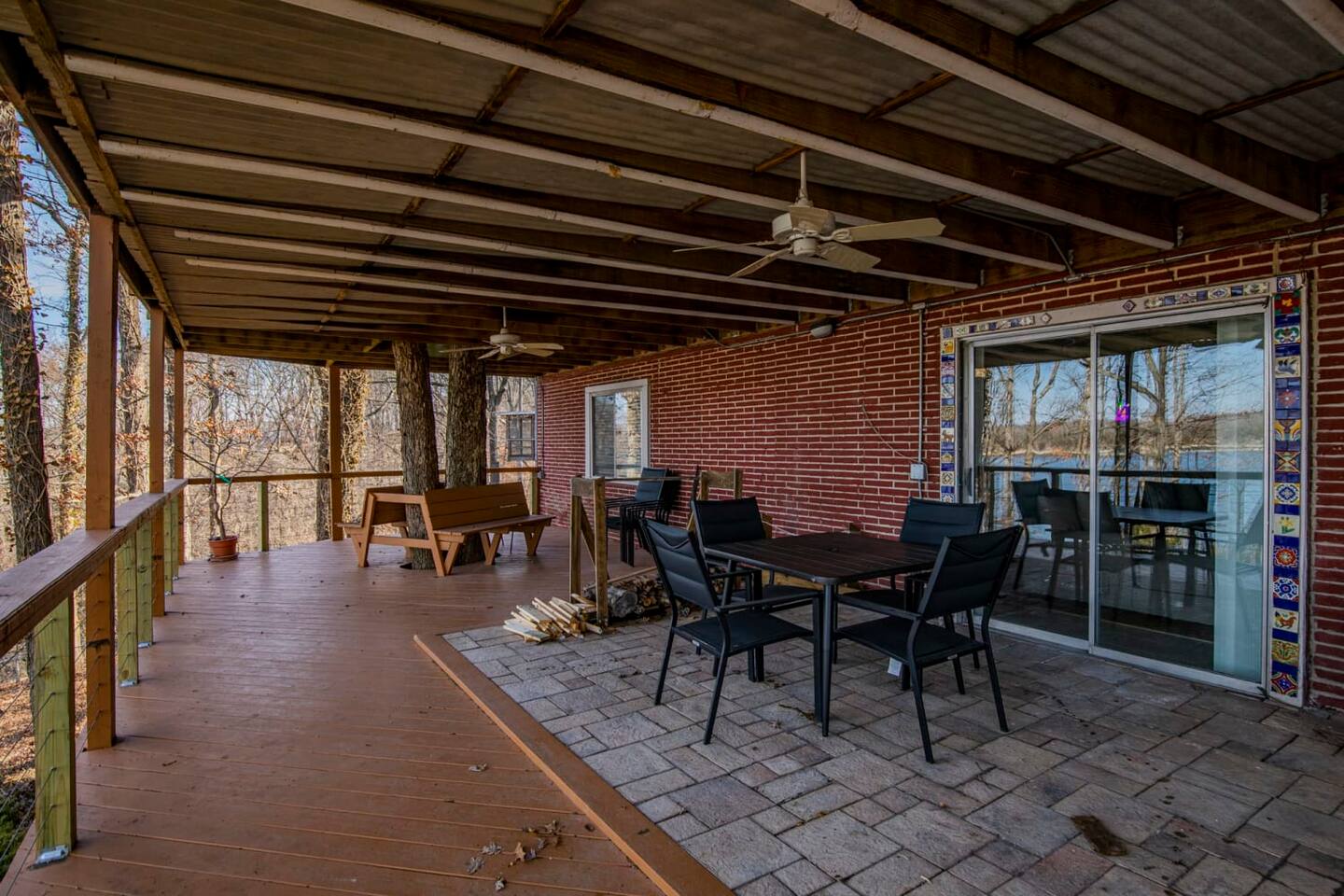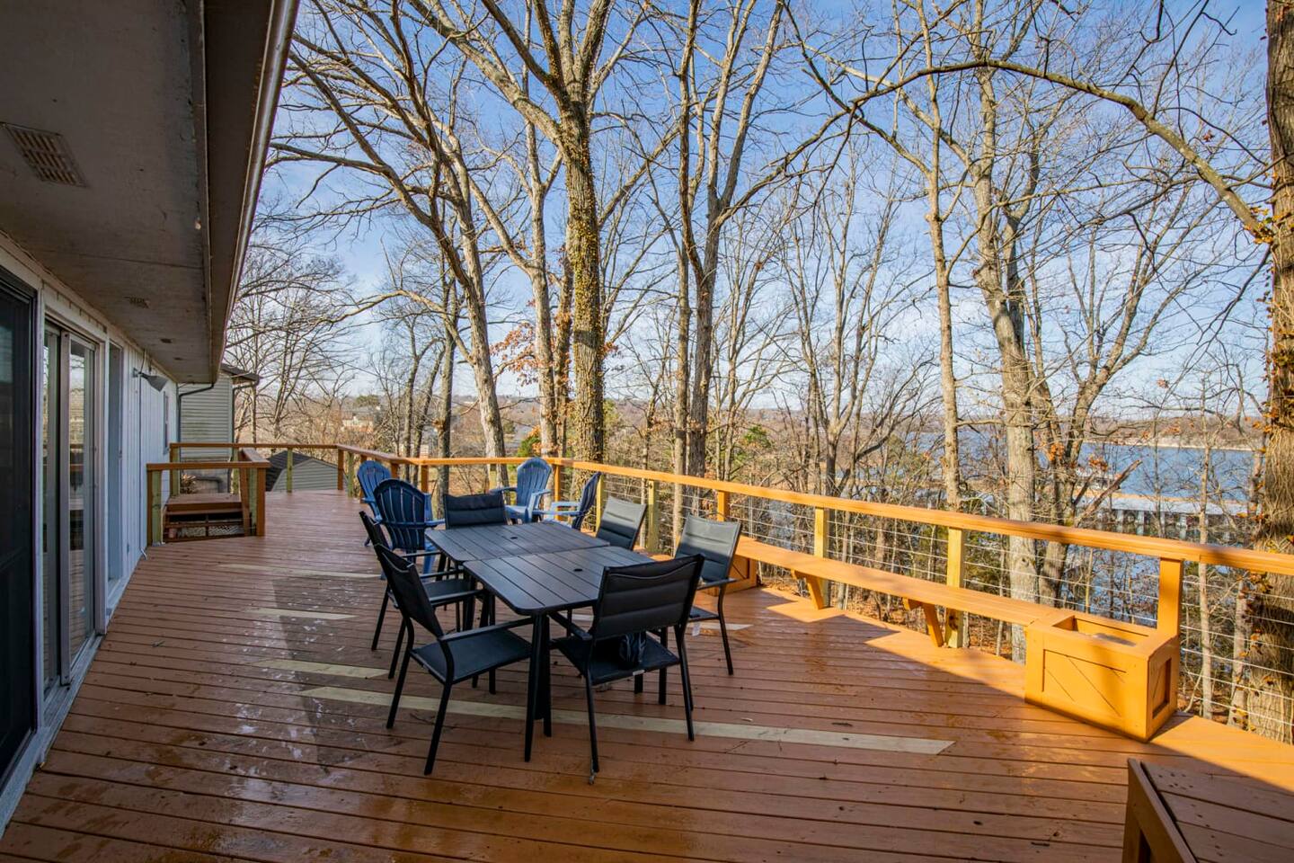 2400sqft 4 bedroom 3 bath house situated lakefront on Beaver Lake. There are 3 bedrooms with King beds and 1 Bedroom featuring 2 sets of twin over full bunks. The house is tastefully decorated with comfortable seating. This house has tons of deck space to accommodate and entertain up to 12 guests