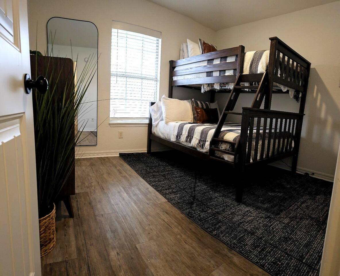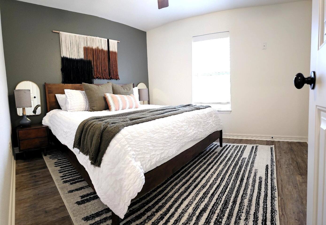 This house backs up to the Crystal Bridges Trail. We have a king sized bed in the master and a twin over full in the 2nd bedroom. The house features 1 full bath, full washer/dryer, coffee maker, incidental toiletries, back patio with a large fenced yard and a full kitchen set up for cooking. This space has wifi and smart TV fro streaming your services. If this listing is booked...we have several more. Check our profile.