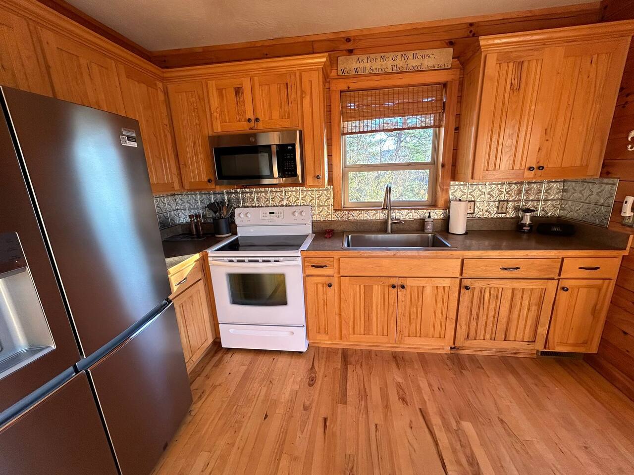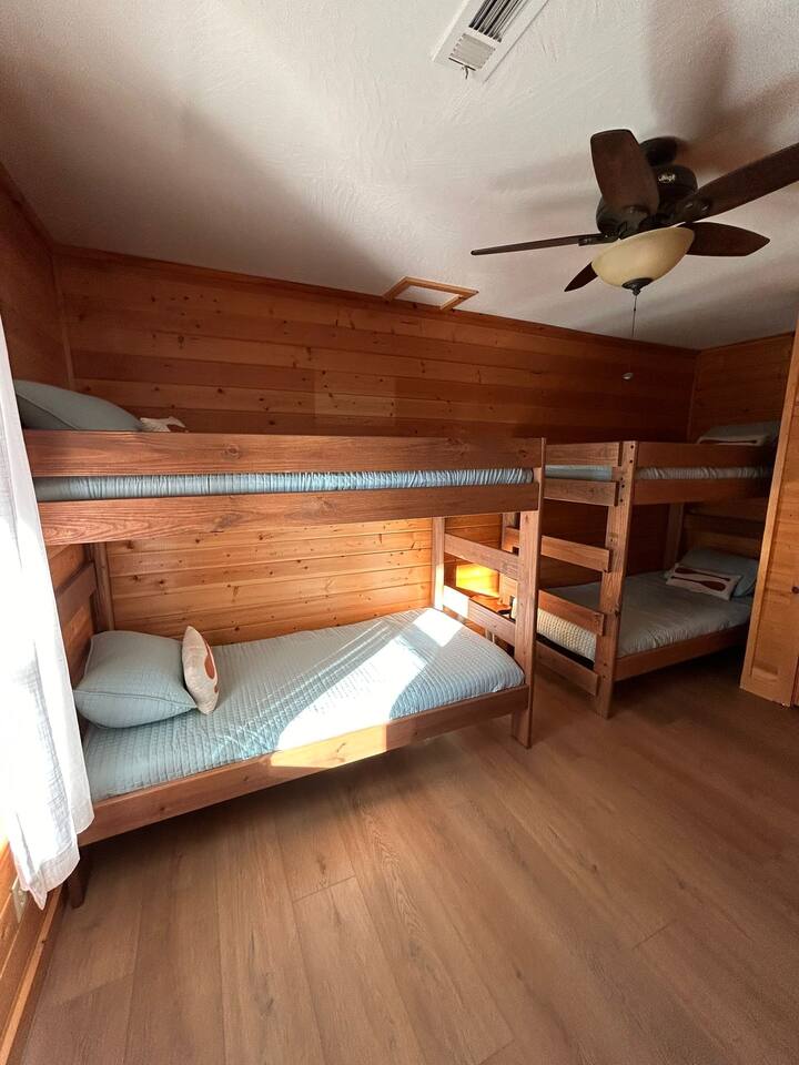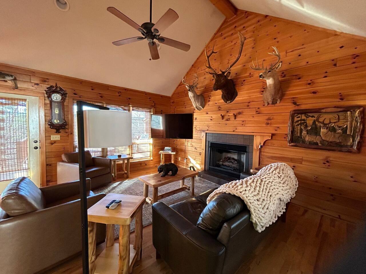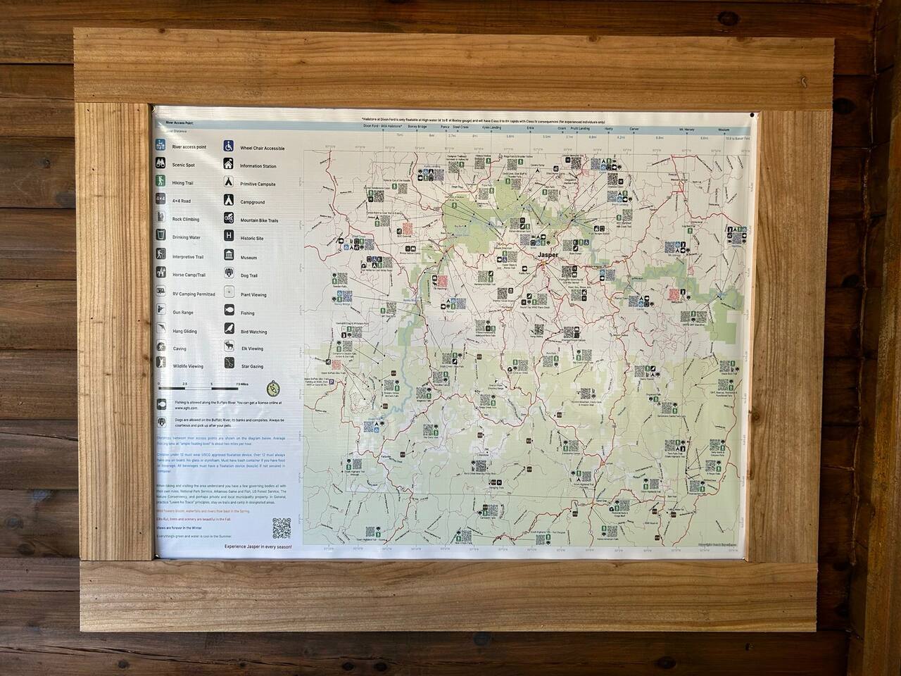 Living Room Step into the cozy living area, featuring plush seating and a gas fireplace—the perfect spot to unwind after a day of outdoor adventures. Large windows offer beautiful views of the surrounding mountains, and the open layout creates a welcoming, communal space. Kitchen & Dining Area Our fully equipped kitchen comes with everything you need to prepare meals, from cookware to utensils. Adjacent to the kitchen is the dining area, with a table that seats the whole family, ideal for sharing meals together while enjoying views of the valley. Master Bedroom The master suite offers a king-sized bed with soft linens and plenty of natural light. This room is a restful retreat, perfect for unwinding at the end of the day. Bedroom 2 This second bedroom features a queen-sized bed with comfortable bedding and a peaceful, rustic ambiance. Bunk Room Designed with kids and families in mind, the bunk room includes two twin bunk beds (4 beds total), along with a retro video game system for hours of entertainment. It’s the perfect spot for the younger guests to have their own space. Bathrooms There are two clean, well-maintained bathrooms with all the essentials, including towels and toiletries. Outdoor Deck Step out onto the large deck to take in the breathtaking views of Mt. Sherman and the Little Buffalo River Valley. There's an outdoor dining area for meals al fresco, plus plenty of seating to enjoy the scenery. Hot Tub & Fire Pit The Alumitub wood-fired hot tub offers a unique and relaxing way to soak in nature, while the nearby fire pit is perfect for s’mores and storytelling under the stars. Garage & Game Area The garage is equipped with a ping pong table, foosball, and a Baggo game for added entertainment. It’s a great indoor option for family fun.