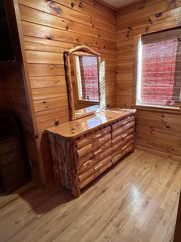 Escape to this authentic, rustic pine log cabin just 2.3 miles east of Jasper, AR. Set on 5 private acres with stunning views of Round Top Mountain and the Little Buffalo River Valley, this 3-bedroom cabin sleeps 8 and offers family-friendly amenities like a foosball table, retro video games, a fire pit, and a wood-fired hot tub. Perfectly located close to town and in the middle between the Upper and Lower Buffalo River, enjoy nature with all the comforts of home. Perfect for a family getaway!