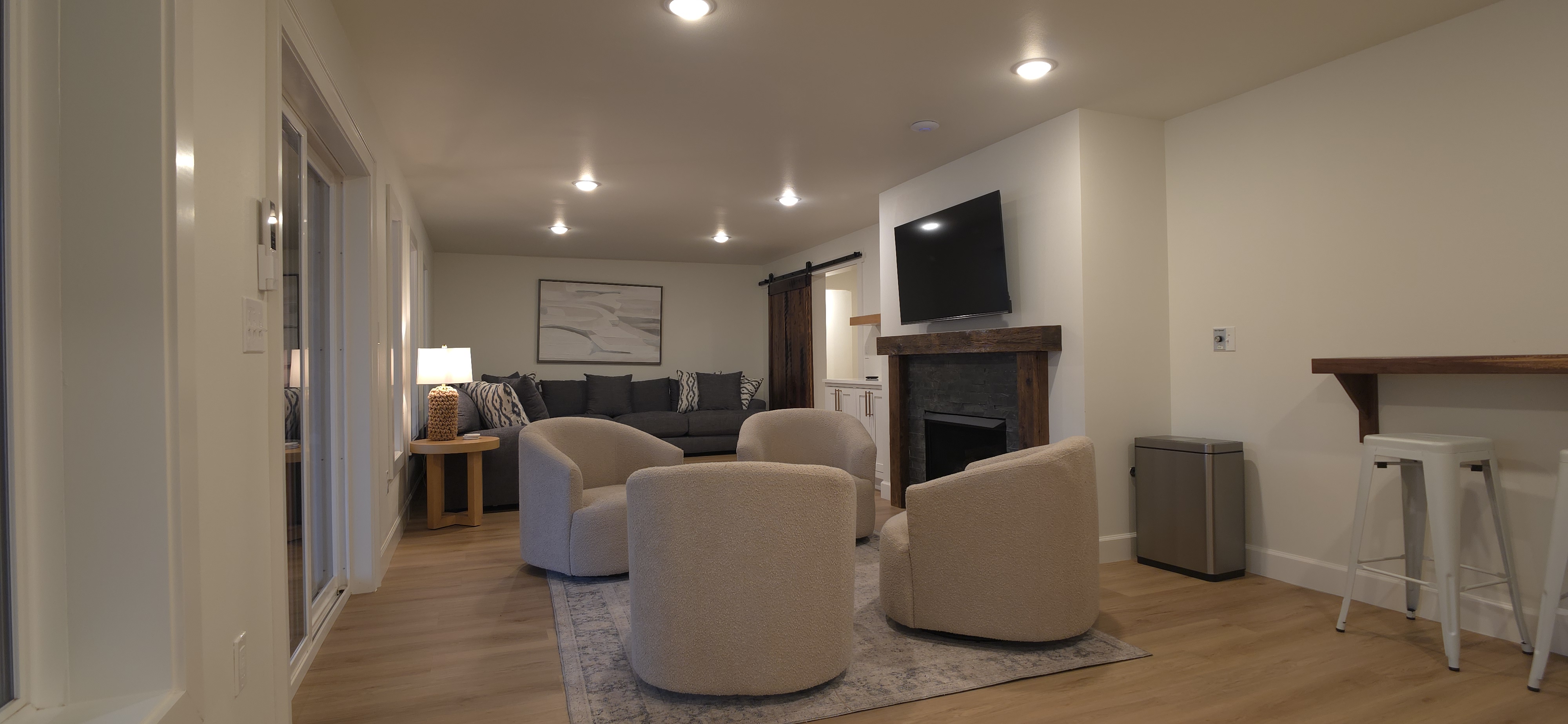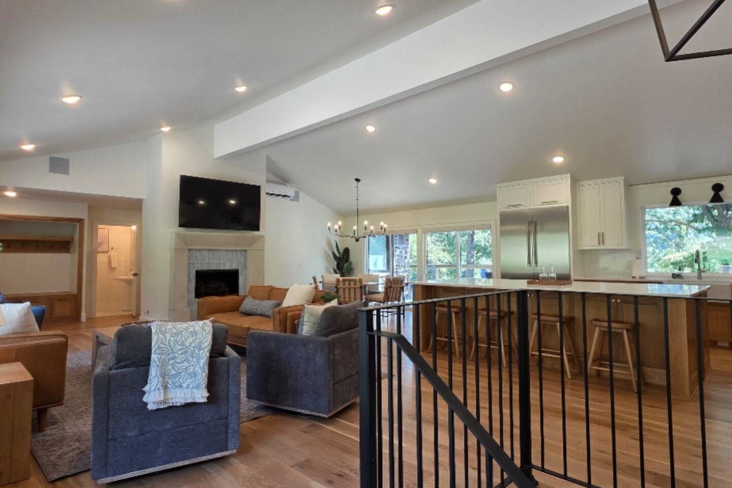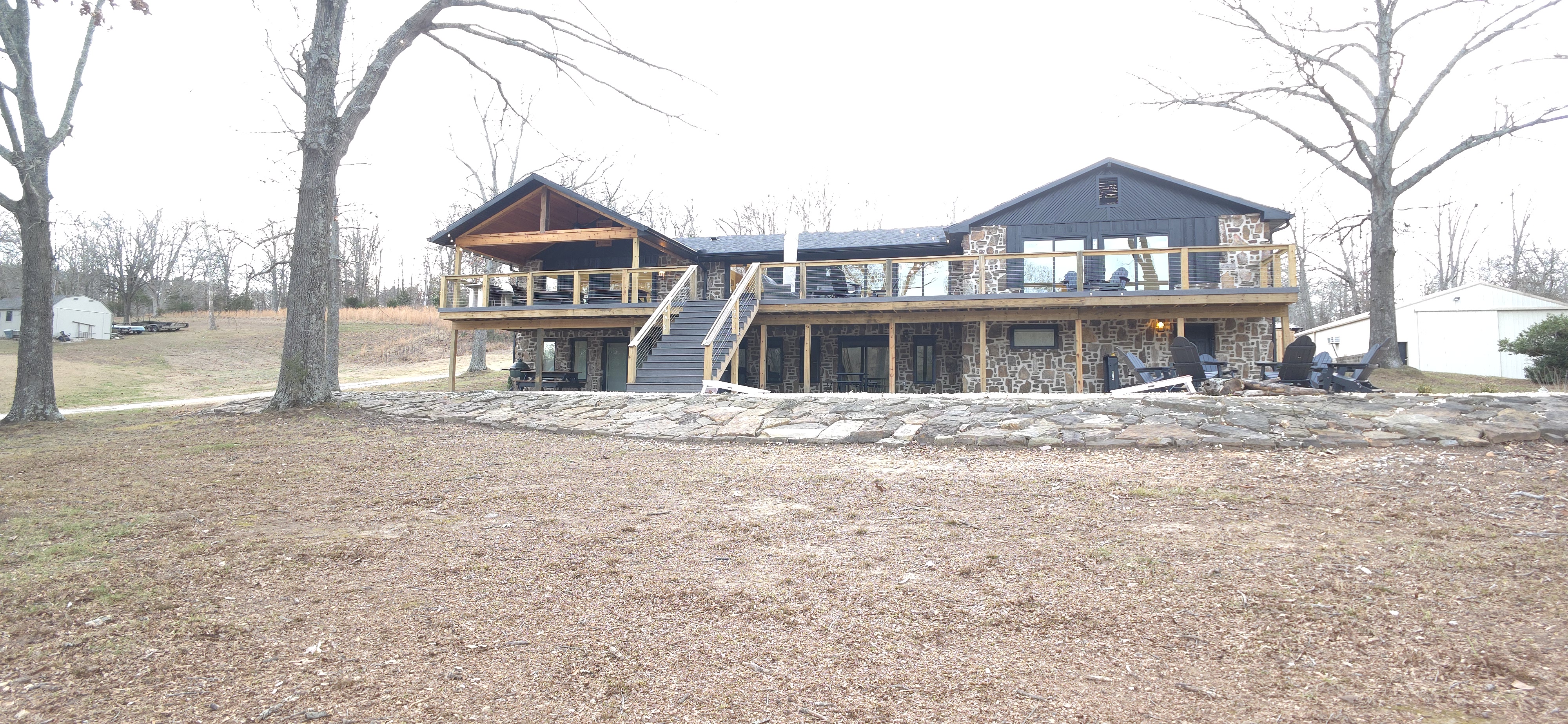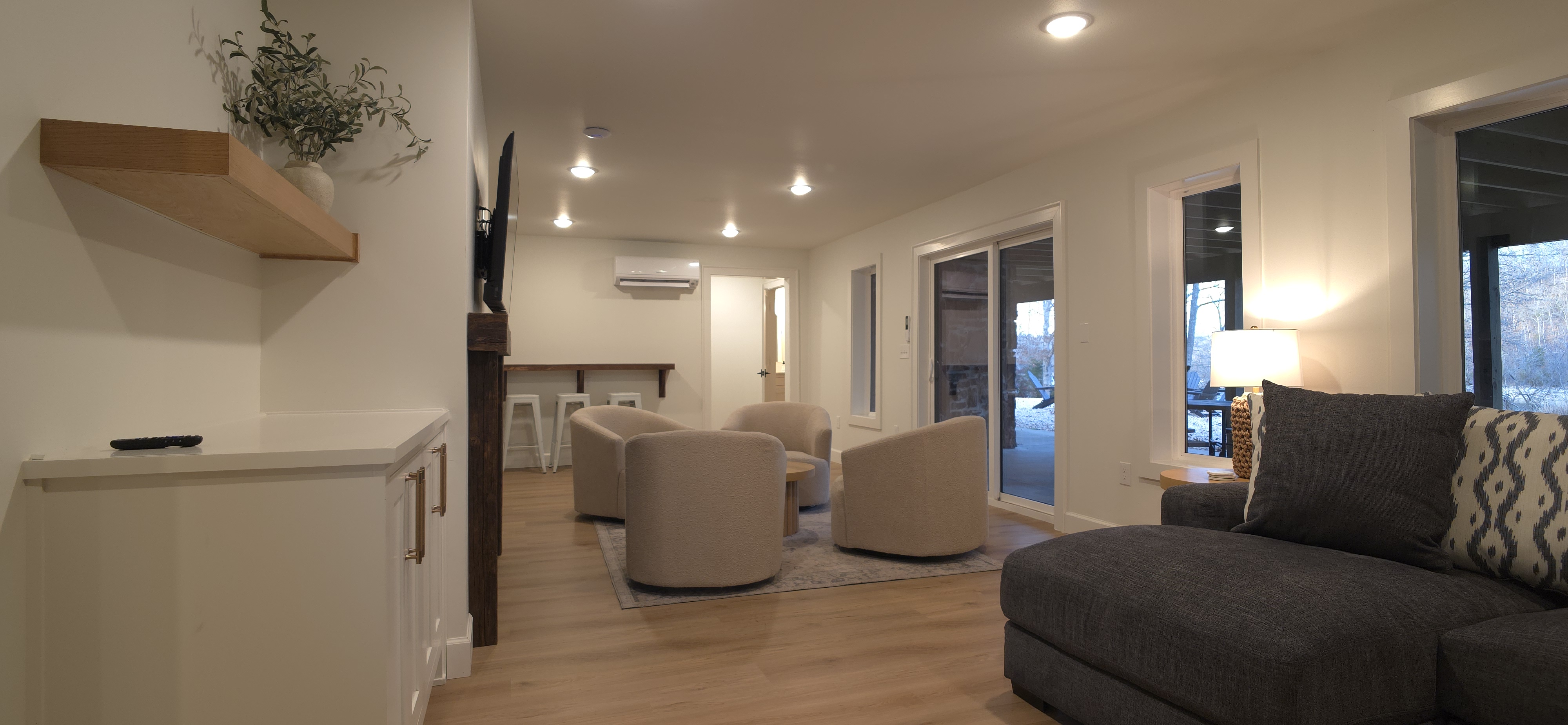 Welcome to The Fjord — a luxury retreat on Beaver Lake designed for families, friends, and groups who want more than just a place to stay. This 5,000 sq. ft. lakefront home sits on a private 4-acre parcel, blending modern finishes with resort-style amenities. Just 7 minutes from downtown Rogers — where you’ll find fine dining, nightlife, and boutique shopping — yet tucked away enough to feel secluded, The Fjord offers the best of both worlds. Inside, the upstairs living area features soaring ceilings, two plush sofas, two accent chairs, and panoramic views of the surrounding trees. The chef’s kitchen is fully outfitted with Thermador appliances, a farmhouse sink, and expansive counters — perfect for preparing meals together or bringing in a private chef. A Sonos sound system fills the main living room and back patio with music at the touch of a button. The sleeping arrangements are designed with flexibility in mind: 4 King Bedrooms (two with ensuite baths, two sharing a spacious bath) The “Little Kids” Room with 2 twin beds The Bunk Room with 4 Twin XLs and 2 Queens in a custom bunk configuration — plus two full bathrooms for convenience In total, The Fjord offers comfortably arranged accommodations for large groups with both privacy and togetherness in mind. Entertainment is at the heart of this property. The downstairs den features a lounge-style sectional, pub table, and bar seating, alongside an arcade with foosball, pop-a-shot basketball, and classic arcade games. Step outside to the expansive patios and enjoy the six-person Jacuzzi hot tub, a Blaze grill and griddle, and a Big Green Egg for those who prefer charcoal cooking. After dinner, gather around the firepit or challenge friends to a game of baggo under 100 feet of string lights designed for ambience without attracting bugs. The sports barn is where The Fjord sets itself apart — a full-size indoor pickleball court, finished with professional surfacing and ready for year-round play. Unlike many homes on Beaver Lake, The Fjord has access to Walmart delivery, Uber Eats, and Uber, making it as convenient as it is luxurious. *Why Guests Love The Fjord* -Resort-style amenities in a private home -Designed with large groups in mind (ample beds, multiple baths, spacious common areas) -Easy access to downtown Rogers nightlife and dining -Rare indoor pickleball barn for year-round play This property was built to bring people together — whether for a relaxing weekend away, a family reunion, or simply time spent with the people who matter most. Multiple outdoor cooking and gathering spaces