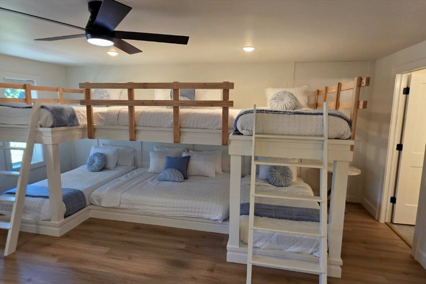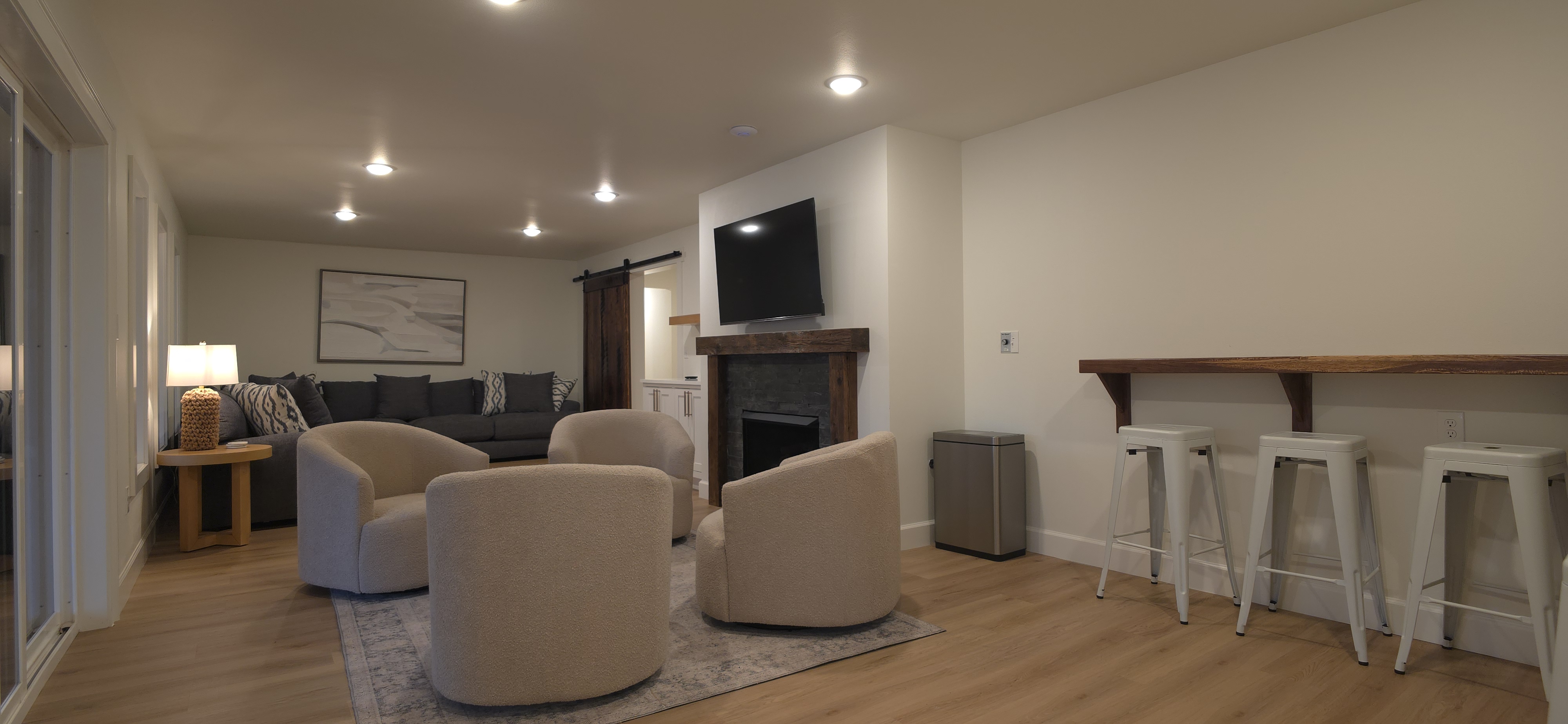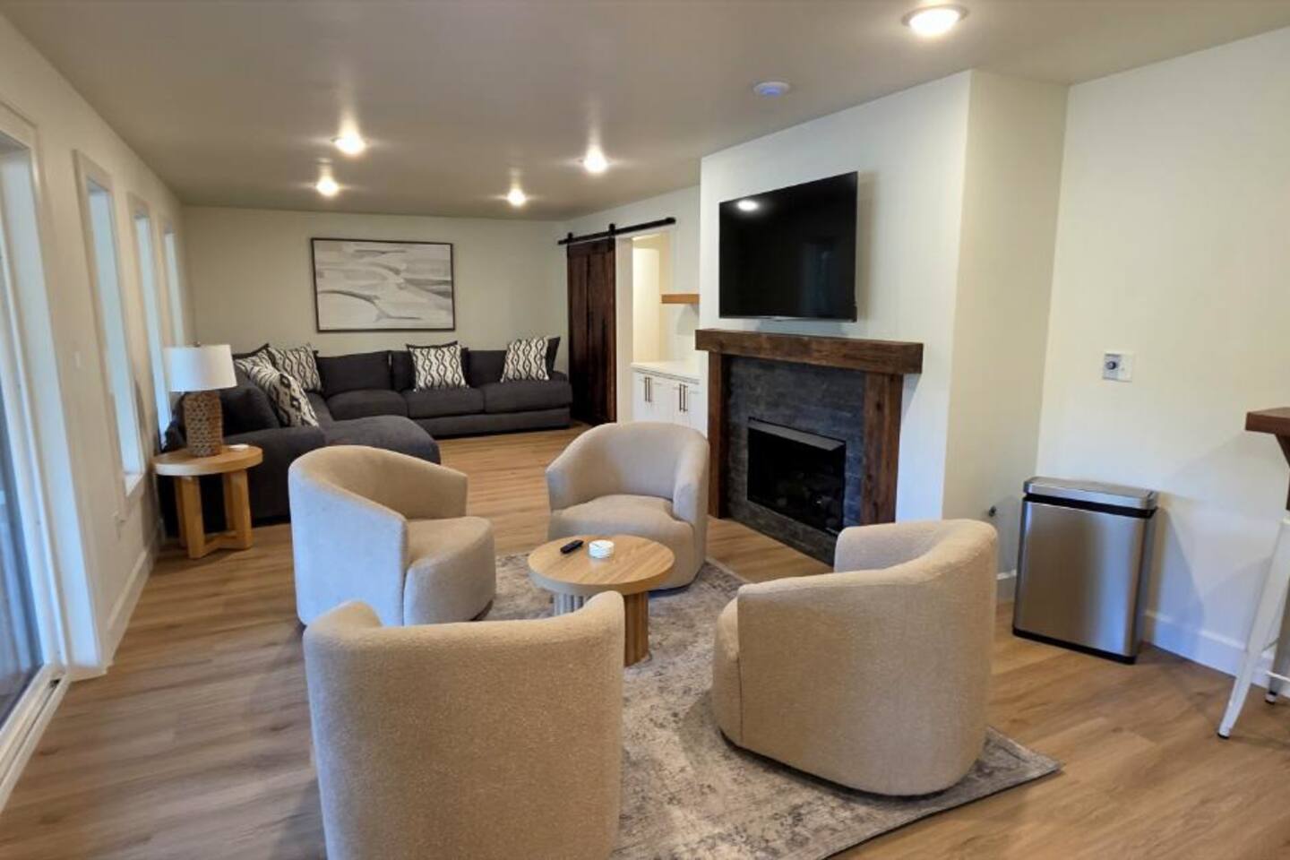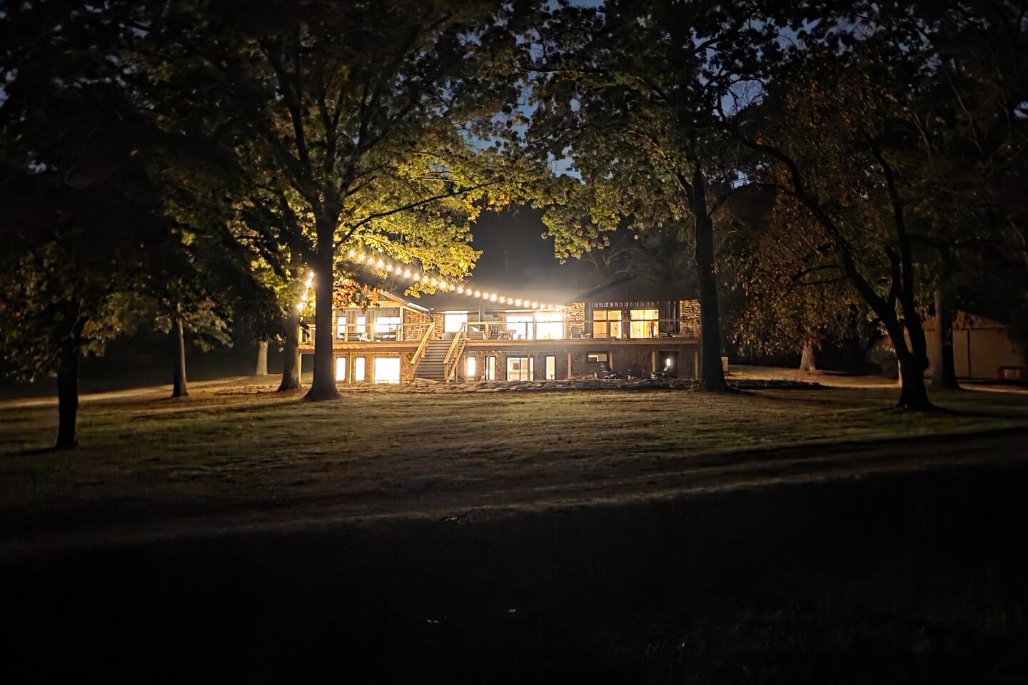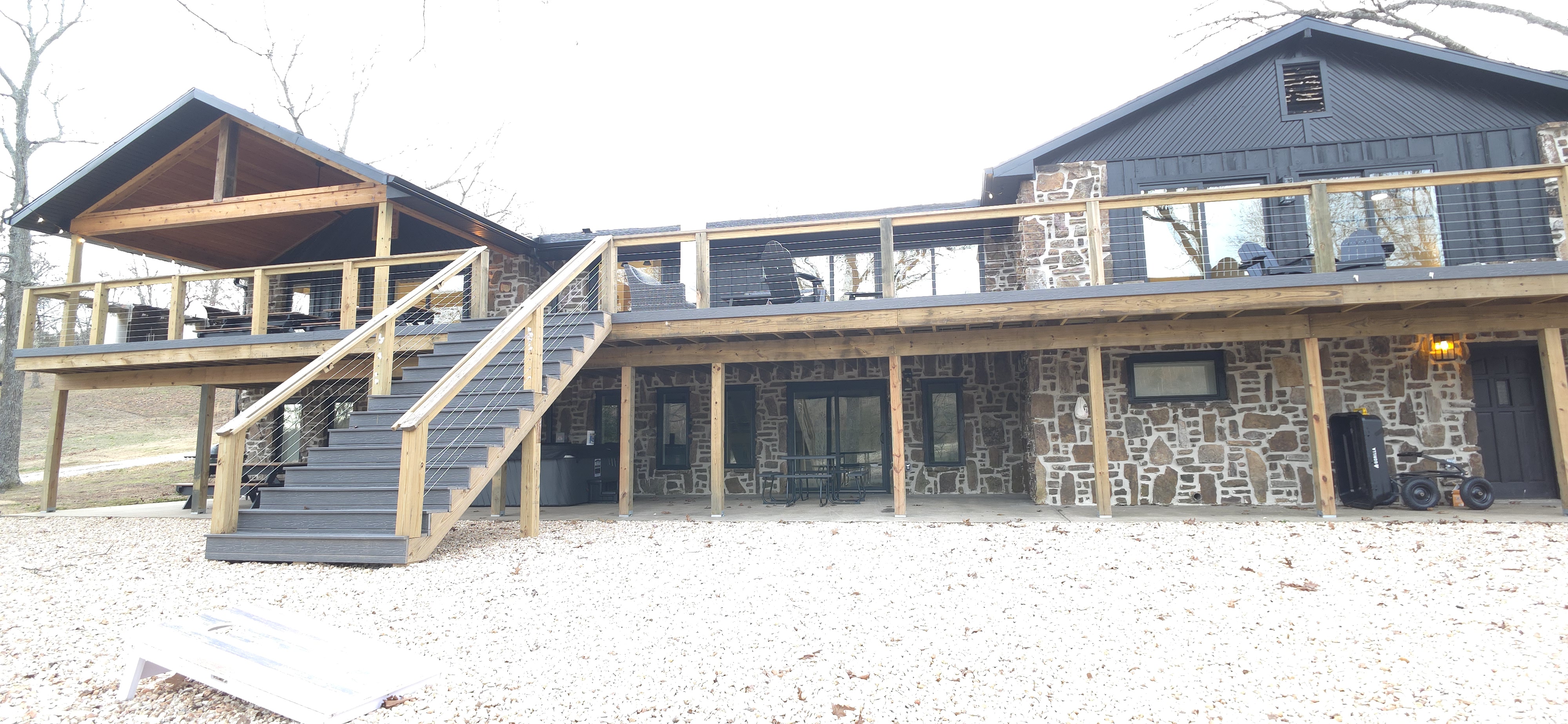 Welcome to The Fjord — a luxury retreat on Beaver Lake designed for families, friends, and groups who want more than just a place to stay. This 5,000 sq. ft. lakefront home sits on a private 4-acre parcel, blending modern finishes with resort-style amenities. Just 7 minutes from downtown Rogers — where you’ll find fine dining, nightlife, and boutique shopping — yet tucked away enough to feel secluded, The Fjord offers the best of both worlds. Inside, the upstairs living area features soaring ceilings, two plush sofas, two accent chairs, and panoramic views of the surrounding trees. The chef’s kitchen is fully outfitted with Thermador appliances, a farmhouse sink, and expansive counters — perfect for preparing meals together or bringing in a private chef. A Sonos sound system fills the main living room and back patio with music at the touch of a button. The sleeping arrangements are designed with flexibility in mind: 4 King Bedrooms (two with ensuite baths, two sharing a spacious bath) The “Little Kids” Room with 2 twin beds The Bunk Room with 4 Twin XLs and 2 Queens in a custom bunk configuration — plus two full bathrooms for convenience In total, The Fjord offers comfortably arranged accommodations for large groups with both privacy and togetherness in mind. Entertainment is at the heart of this property. The downstairs den features a lounge-style sectional, pub table, and bar seating, alongside an arcade with foosball, pop-a-shot basketball, and classic arcade games. Step outside to the expansive patios and enjoy the six-person Jacuzzi hot tub, a Blaze grill and griddle, and a Big Green Egg for those who prefer charcoal cooking. After dinner, gather around the firepit or challenge friends to a game of baggo under 100 feet of string lights designed for ambience without attracting bugs. The sports barn is where The Fjord sets itself apart — a full-size indoor pickleball court, finished with professional surfacing and ready for year-round play. Unlike many homes on Beaver Lake, The Fjord has access to Walmart delivery, Uber Eats, and Uber, making it as convenient as it is luxurious. *Why Guests Love The Fjord* -Resort-style amenities in a private home -Designed with large groups in mind (ample beds, multiple baths, spacious common areas) -Easy access to downtown Rogers nightlife and dining -Rare indoor pickleball barn for year-round play This property was built to bring people together — whether for a relaxing weekend away, a family reunion, or simply time spent with the people who matter most. Multiple outdoor cooking and gathering spaces