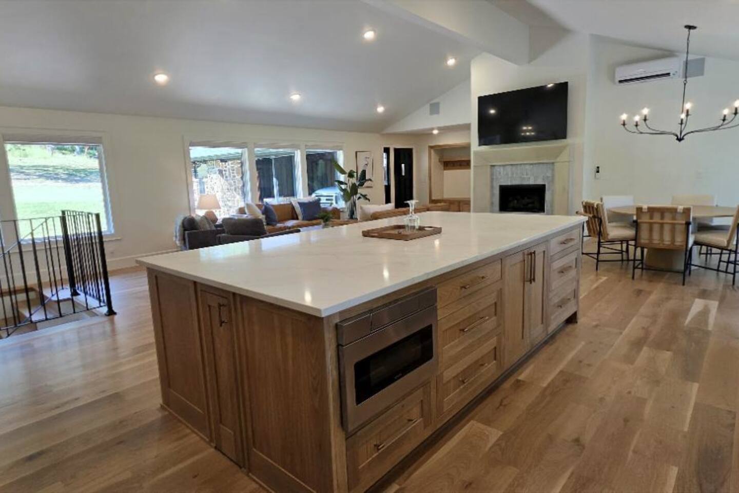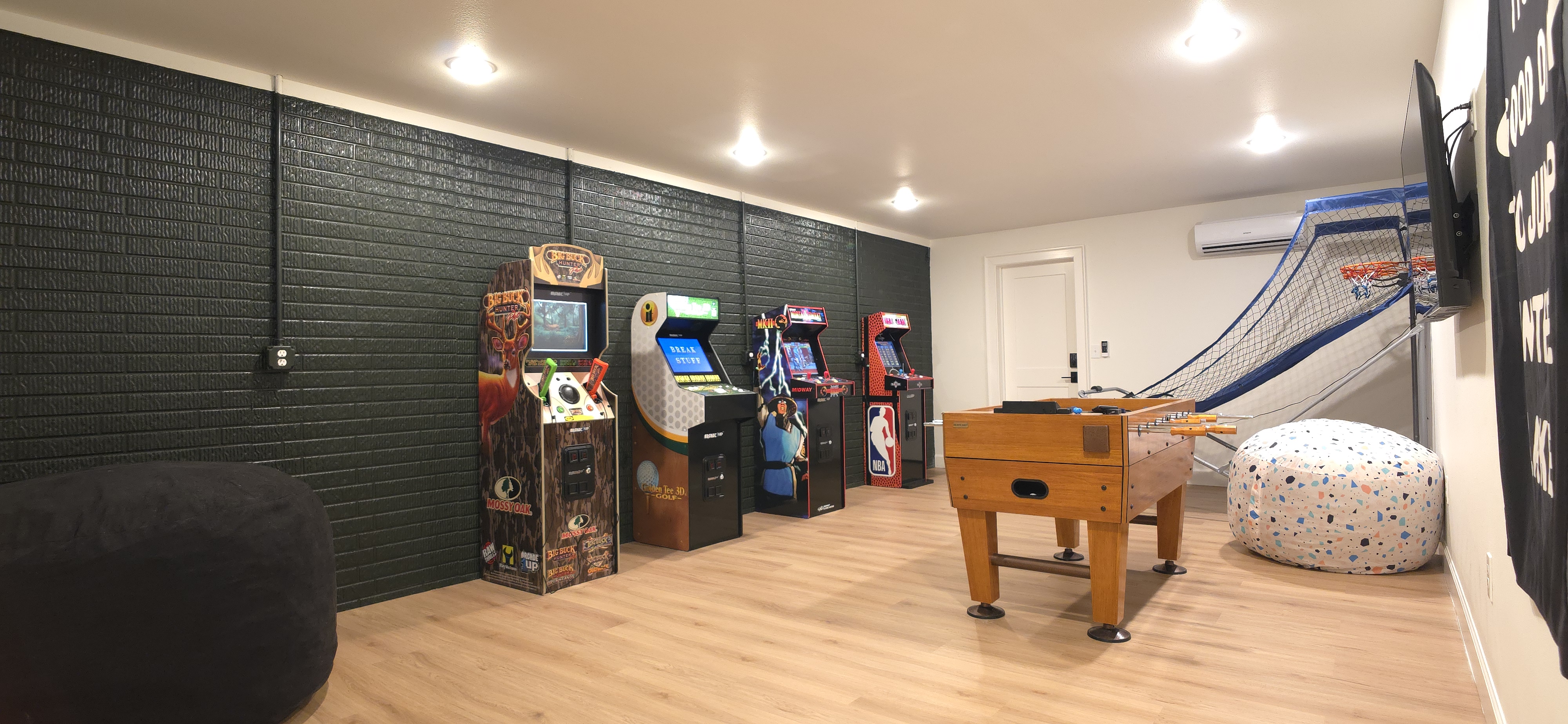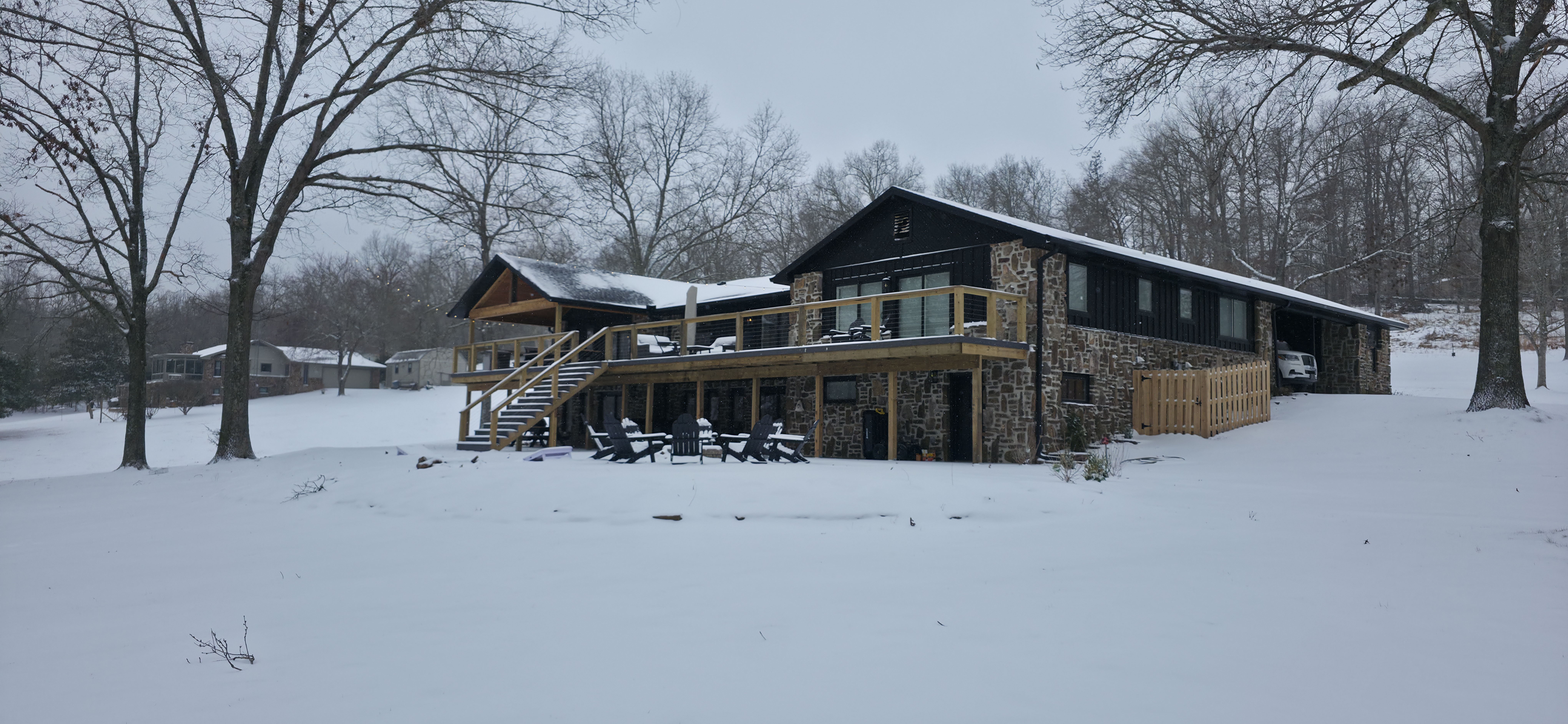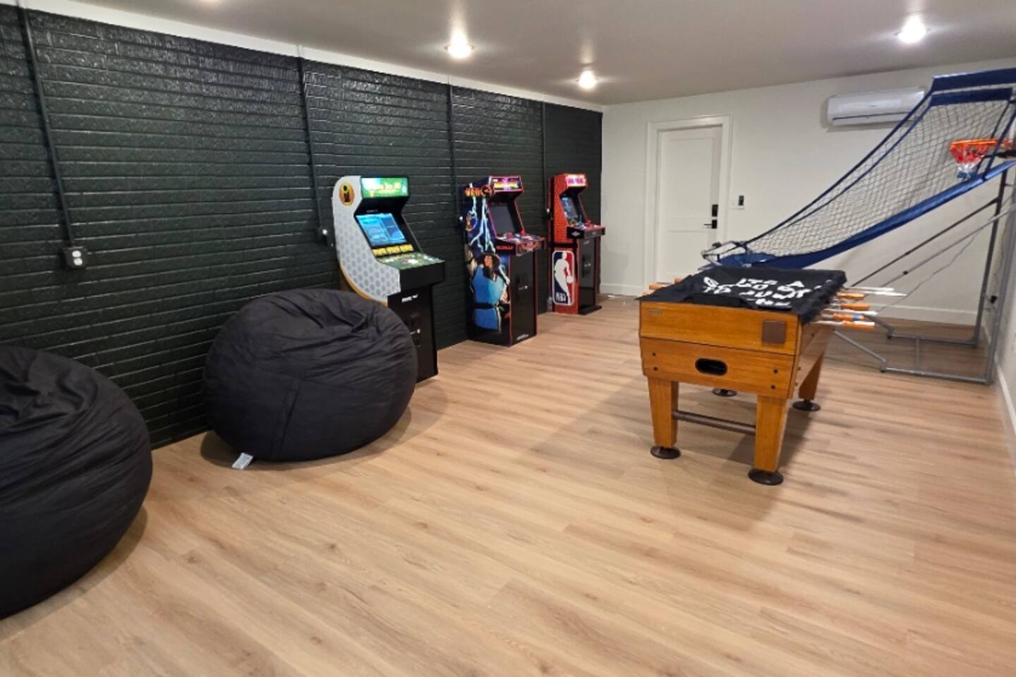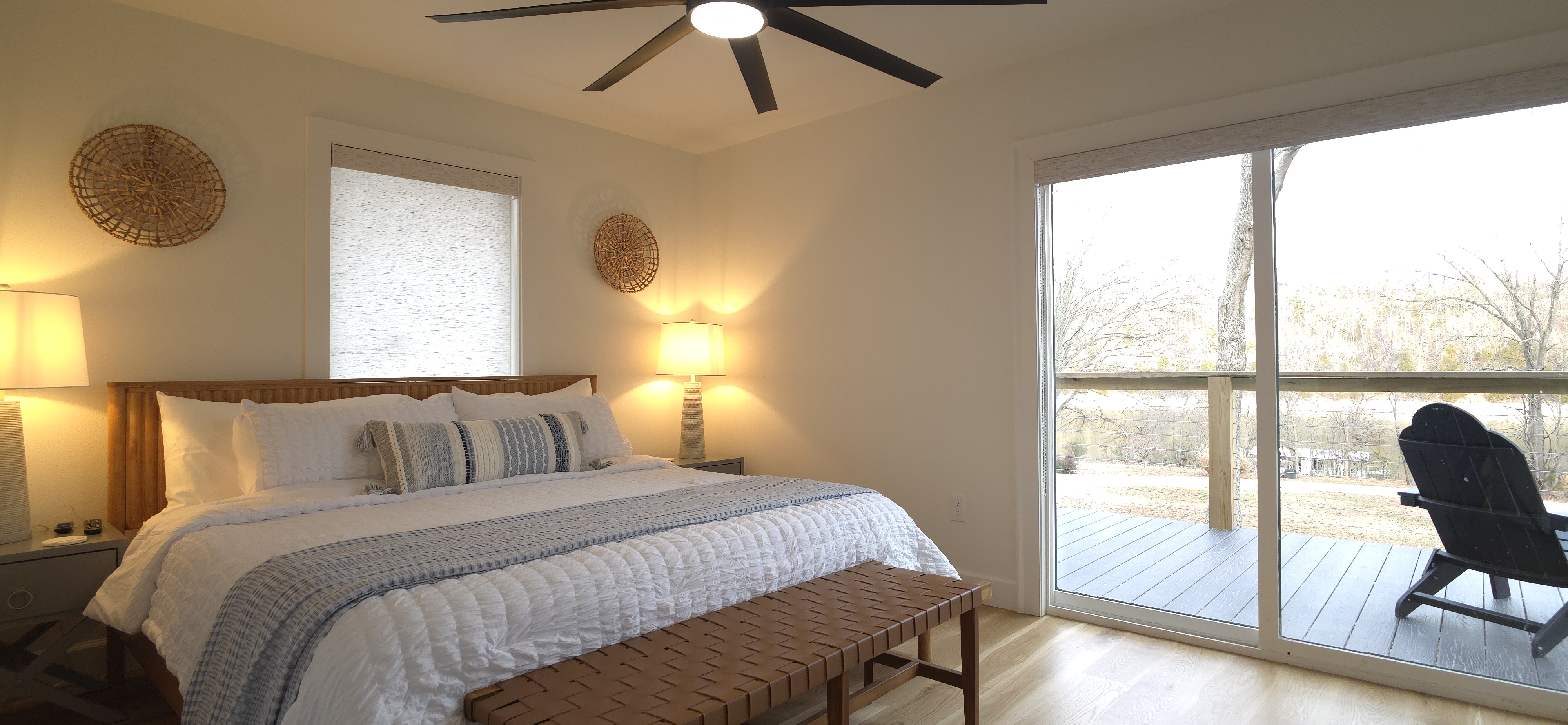 Welcome to The Fjord — a luxury retreat on Beaver Lake designed for families, friends, and groups who want more than just a place to stay. This 5,000 sq. ft. lakefront home sits on a private 4-acre parcel, blending modern finishes with resort-style amenities. Just 7 minutes from downtown Rogers — where you’ll find fine dining, nightlife, and boutique shopping — yet tucked away enough to feel secluded, The Fjord offers the best of both worlds. Inside, the upstairs living area features soaring ceilings, two plush sofas, two accent chairs, and panoramic views of the surrounding trees. The chef’s kitchen is fully outfitted with Thermador appliances, a farmhouse sink, and expansive counters — perfect for preparing meals together or bringing in a private chef. A Sonos sound system fills the main living room and back patio with music at the touch of a button. The sleeping arrangements are designed with flexibility in mind: 4 King Bedrooms (two with ensuite baths, two sharing a spacious bath) The “Little Kids” Room with 2 twin beds The Bunk Room with 4 Twin XLs and 2 Queens in a custom bunk configuration — plus two full bathrooms for convenience In total, The Fjord offers comfortably arranged accommodations for large groups with both privacy and togetherness in mind. Entertainment is at the heart of this property. The downstairs den features a lounge-style sectional, pub table, and bar seating, alongside an arcade with foosball, pop-a-shot basketball, and classic arcade games. Step outside to the expansive patios and enjoy the six-person Jacuzzi hot tub, a Blaze grill and griddle, and a Big Green Egg for those who prefer charcoal cooking. After dinner, gather around the firepit or challenge friends to a game of baggo under 100 feet of string lights designed for ambience without attracting bugs. The sports barn is where The Fjord sets itself apart — a full-size indoor pickleball court, finished with professional surfacing and ready for year-round play. Unlike many homes on Beaver Lake, The Fjord has access to Walmart delivery, Uber Eats, and Uber, making it as convenient as it is luxurious. *Why Guests Love The Fjord* -Resort-style amenities in a private home -Designed with large groups in mind (ample beds, multiple baths, spacious common areas) -Easy access to downtown Rogers nightlife and dining -Rare indoor pickleball barn for year-round play This property was built to bring people together — whether for a relaxing weekend away, a family reunion, or simply time spent with the people who matter most. Multiple outdoor cooking and gathering spaces